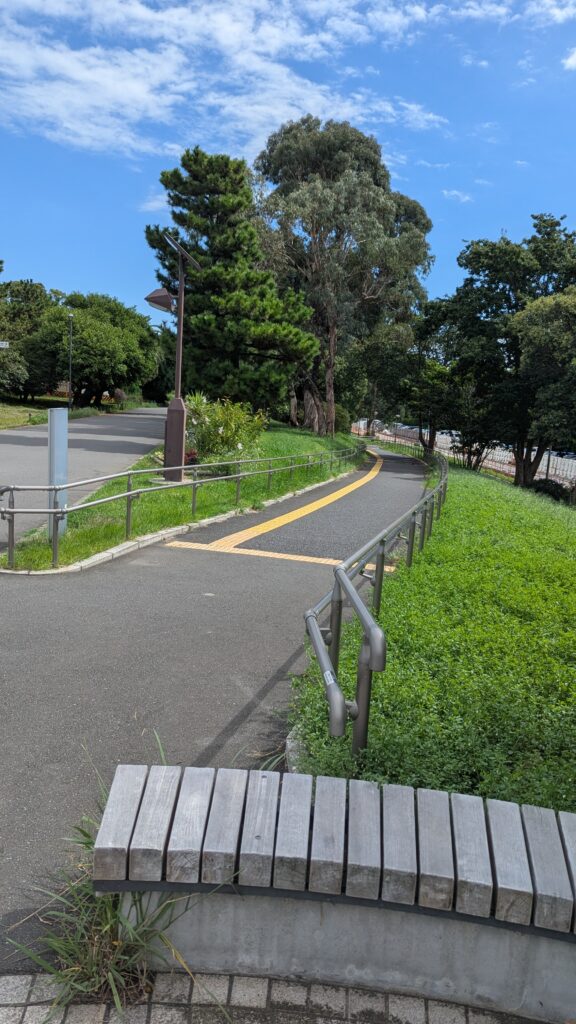 ⇒「ゆうかり橋」から公園に入り、BumBのレストランに向かいます。