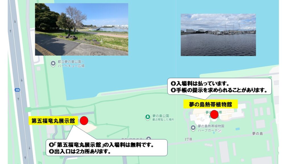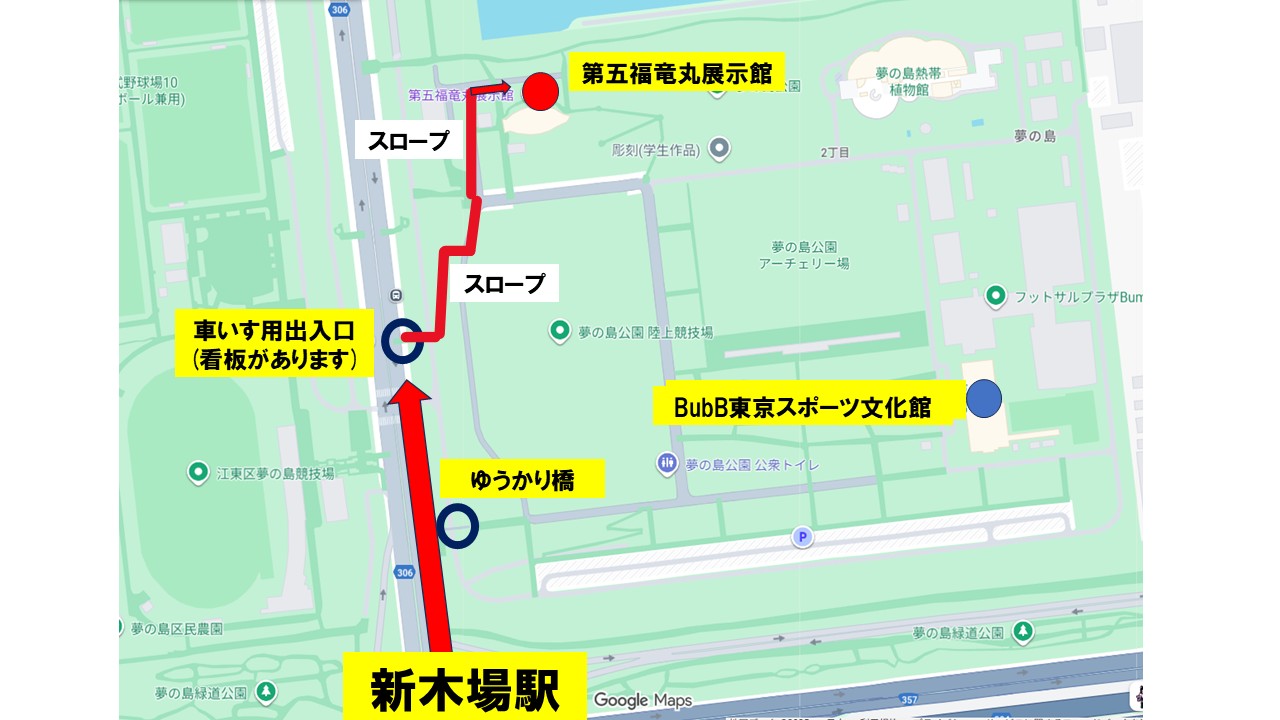 ※「第五福竜丸展示館」から、「夢の島熱帯植物館」を経由して、徒歩で約8分(580m)です。(Googleマップ調べ)