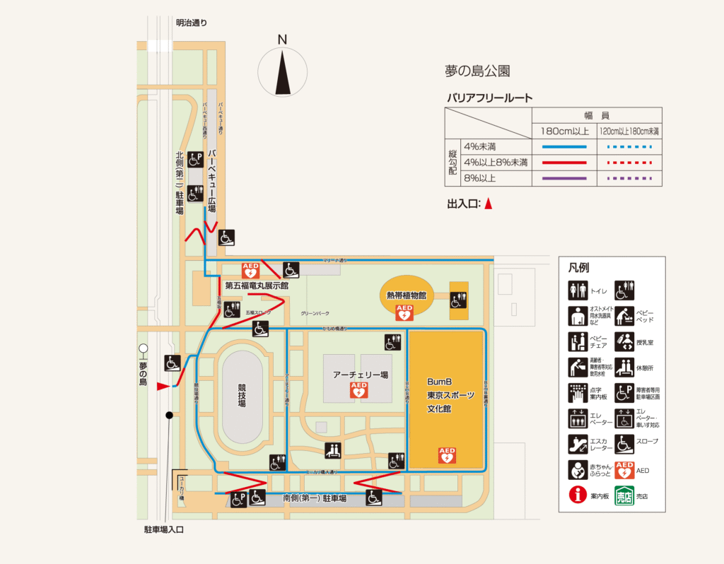 夢の島公園内: 豊かな緑に囲まれた環境で、敷地内でのピクニックなども楽しめます。