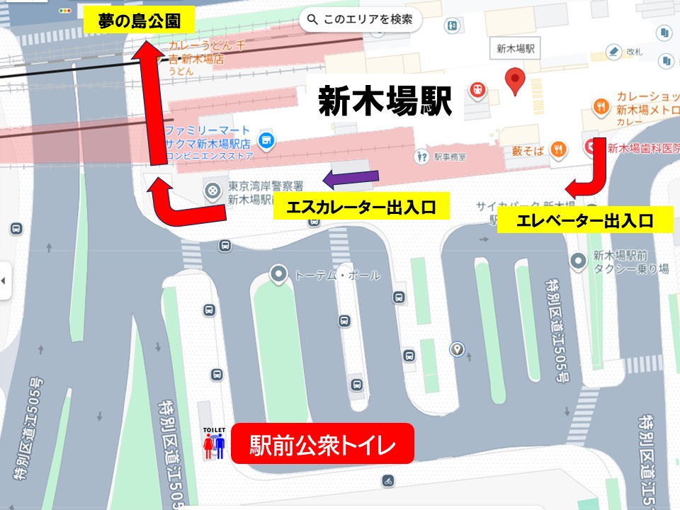 ➡トイレは改札内と駅前公衆トイレがあります。(下図参照)