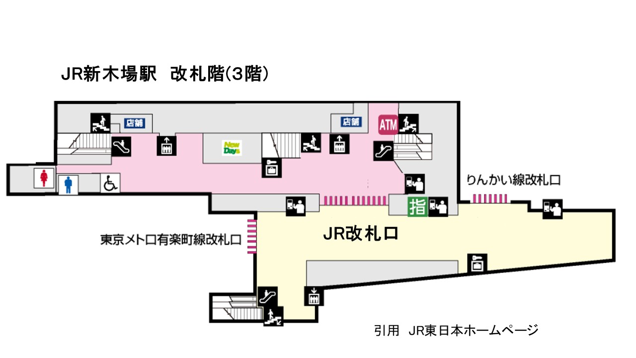 JR京葉線ホームが4階、コンコースが3階、東京メトロ有楽町線ホームと東京臨海高速鉄道りんかい線ホームが2階にあります。