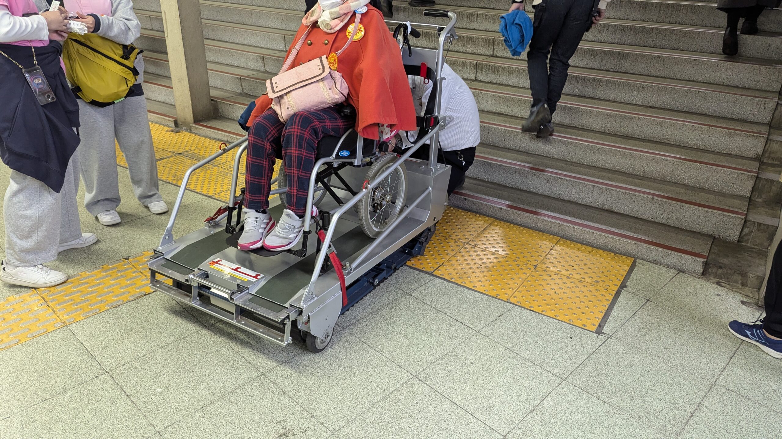 多摩都市モノレールは開業時から全駅にエレベーターが設置されており、車いすの方もスムーズに移動できる動線が確保されています。